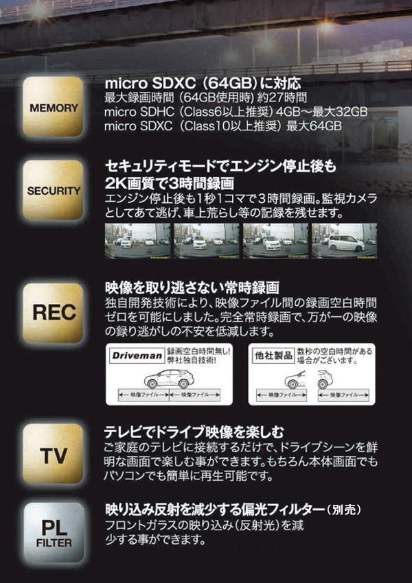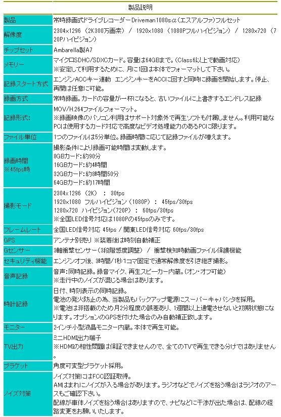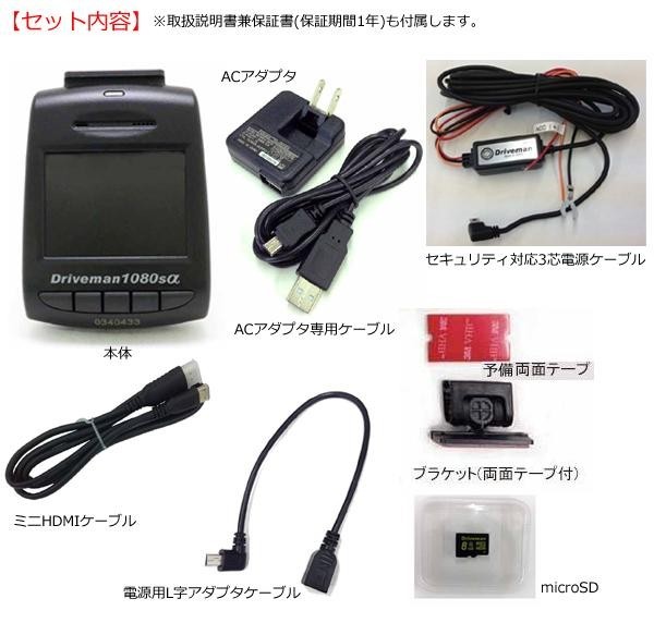 | セット内容 | 本体 セキュリティ対応3芯電源ケーブル(約3m) 電源用L字アダプタケーブル 可変式装着ブラケット(両面テープ装着済) 予備両面テープ 8GBmicroSDHCカード(Class6以上) ACアダプタ ACアダプタ専用ケーブル ミニHDMIケーブル 取扱説明書兼保証書(保証期間1年) |