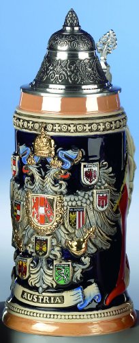 -. Title : Bierseidel Bierkrug "Austria Wappenreliefseidel" 0,75L, aus deutschem Edel- Feinsteinzeug, Handbemalt, Zinndeckel mit 97%Zinn