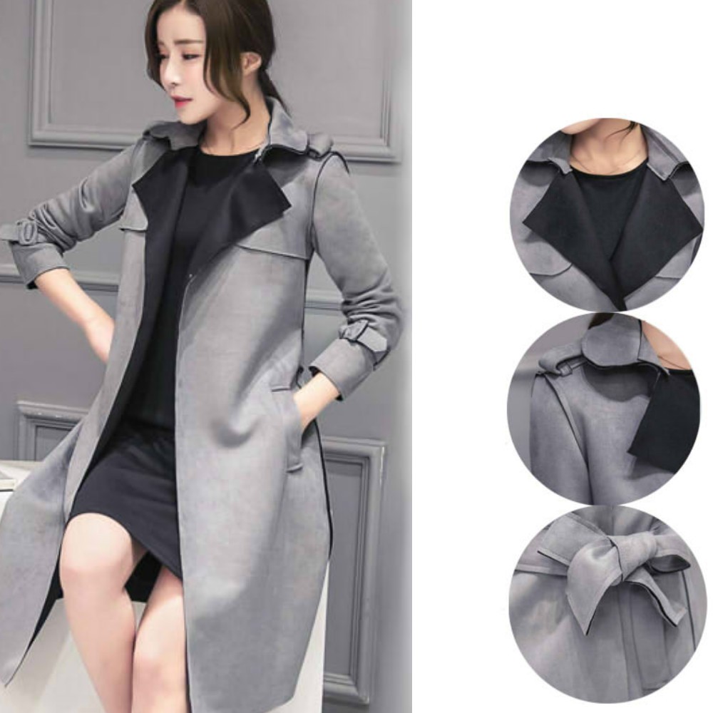 通勤◎☆カジュアル☆ダブルフェイス スエード スキニー トレンチコート