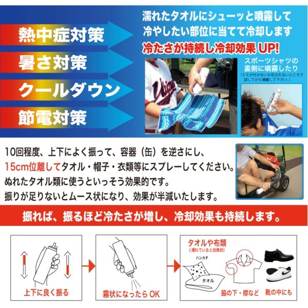 タオルにシューッと噴霧して冷やしたい部位に当てて使用