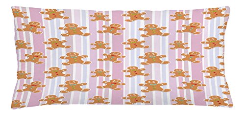 Gingerbread Man Throw Pillow Cushion Cover by Ambesonne, Kids Pattern with Pastel Colored Strip...