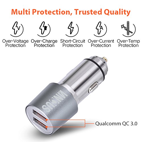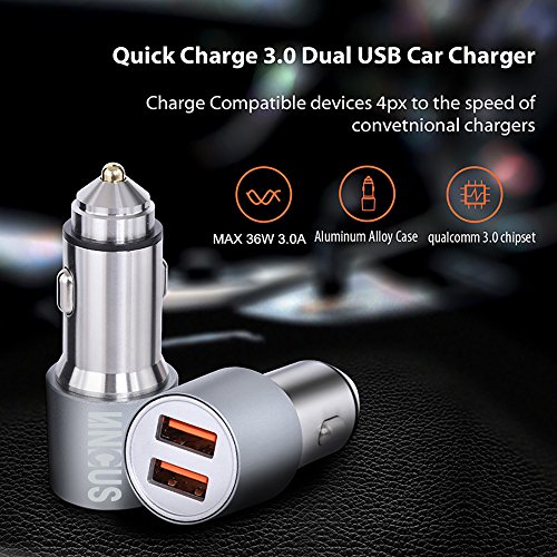 - Dual USB ports: Let the dual Quick Charge 3.0 and USB ports charge up to 2 smartphones, tablets, or QC compatible devices at full speed and simultaneously.