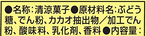 原材料:ぶどう糖、でん粉、カカオ抽出物、加工でん粉、酸味料、乳化剤、香料