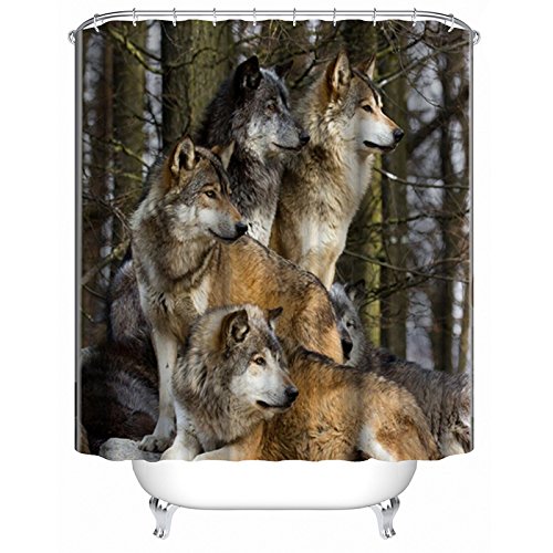 ALDECOR Zoo Shower Curtain, Wolf Family Style Print, Polyester Fabric Bathroom Shower Curtain Set with Hooks, 80 Inches Long,