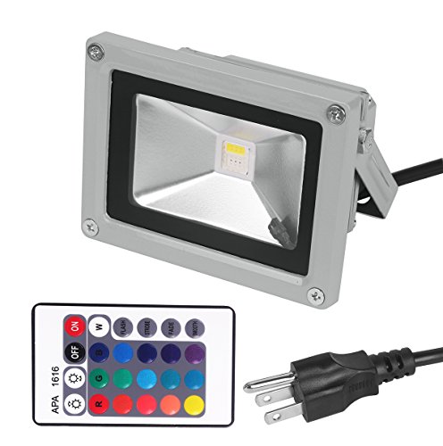Netboat Remote Control Waterproof 10W RGBW LED Flood Light Color Changing Landscape Light,RGB and Daylight White,US 3-Plug for Garden,Yard, Party,Spot,Hotel