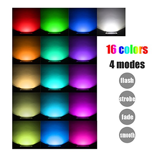 - 【RGB mode and memory】: It includes 14 colors of light and 4 modes of flashing effect [FLASH, STROBE, FADE, SMOOTH]. Also it equips with memory function for which it can remember the color or mode last time used.