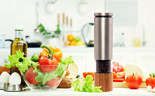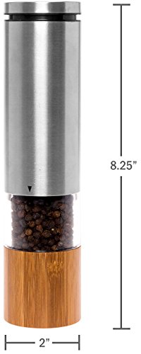 - MAKES GRINDING FRESH SPICES EASY - The simple one-touch operation makes grinding all manner of spices a quick and efficient affair. Just push the top button, and the battery operated grinder turns on, dispensing the perfect amount of salt or pepper. A convenient LED light on the bottom lights up automatically, providing the perfect amount of illumination to prevent over-seasoning.
