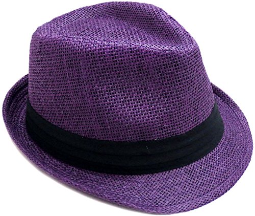 Hemantal Men/Women Classic Lightweight Straw Fedora Hat w/Band - Assorted Colors
