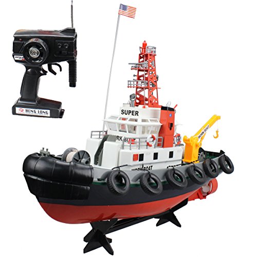 Specifications: ?Feature Function;7 Channel Remote Control Firboat Go Forward, Backward,Turn Left,Turn Right,Spurt Water, Working Sounds,LED Lights....Its speed is about 10km/h ?Size and Material:1:24 scale Model size 23.6x17.8x9.1inch and 3.06kg weight,excellent environmental protection abs plastics material. ?Rechargeable Battery:High Capacity 1000mah 9.6V rechargeable Ni-Cd battery playing time about 20 minute,fast chargering time 3-4 hours,for age 14 ,Realistics Seaport Boat Work For Outdoors in water,Great fun Ideal Gift.