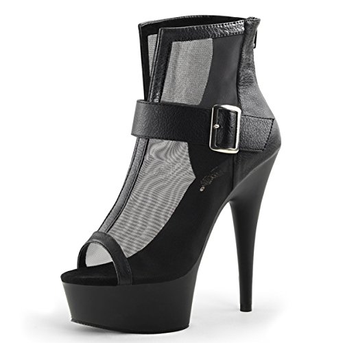 Womens Open Toe Boots Black Mesh Booties Buckle Ankle Strap 6 Inch Heels Shoes