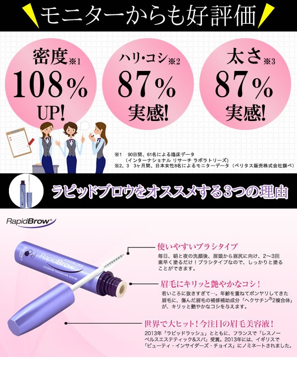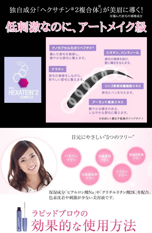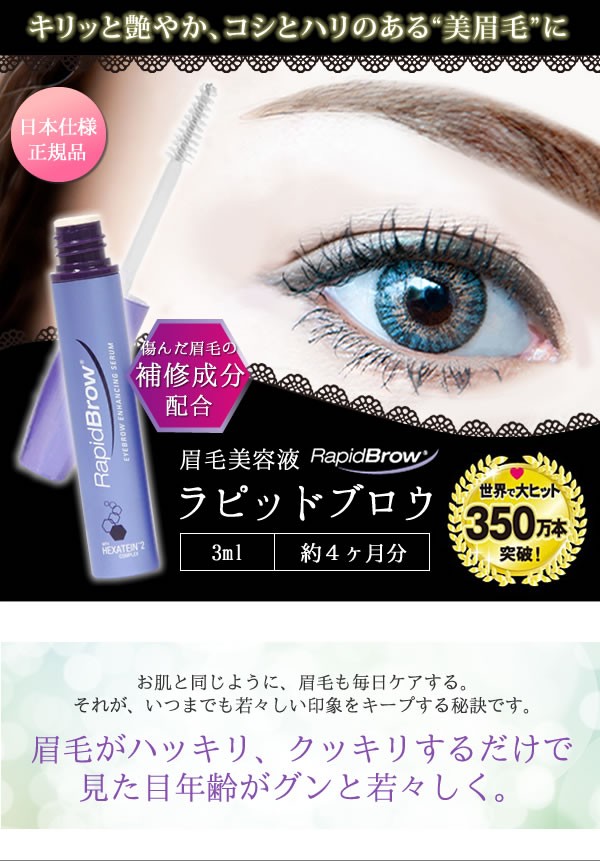 | 世界中の女性を虜にしている眉毛美容液「ラピッドブロウ」の日本正規品。傷んだ眉毛の補修成分「ヘクサチン(R)2複合体」がキリッと艶やか、コシとハリのある「美眉毛」に導きます。ムラなく塗れるブラシタイプ。 |