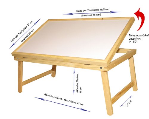 - Feature : Multipurpose lap tray/desk perfect for meals, reading, or working; / Ajustable top has 5 angled position. / Legs fold to make simple serving tray and compact storage / Size: 19 x12 x 7 inch; when folded: 22 x 12 x 1.6 inch. / Material: wood frame, varnished, painted white; Weight: 4.4 pounds.Color:as picture