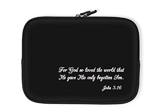 Product Description Easily carry your Bible Study and Church essentials in these fully padded neoprene cases. Our John 3:16 Church Case can accommodate items up to 11" in height. Made of neoprene Case is 11" wide 0