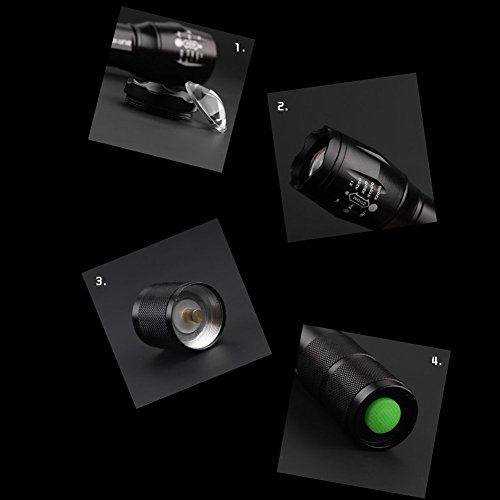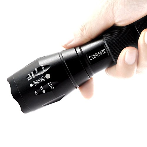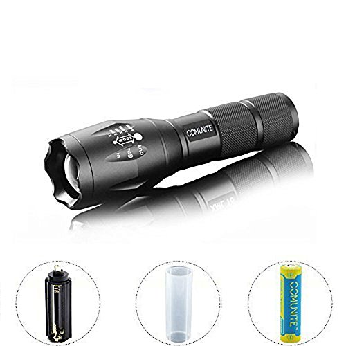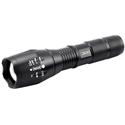 Comunite 900 Lumen CREE XML T6 LED Zoomable Tactical Flashlight -Adjustable Focus -Rugged Aluminum Construction -Water Resistant Lighting Lamp Torch -18650 Battery and Charger Included