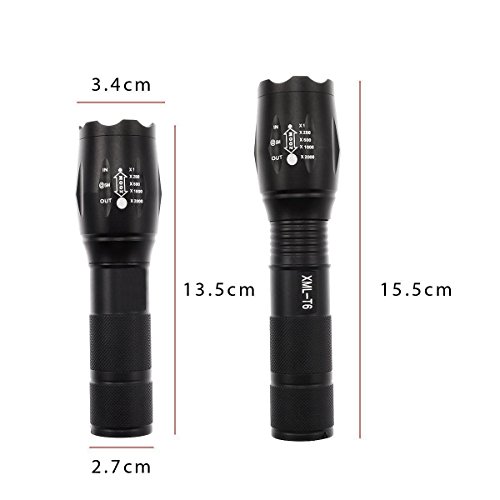 Made of high quality 6061T aluminum alloy Lamp base: CREE, high power LED, with a lifespan of up to 100,000 hours Water resistence design, can be used in rainy days Super bright, blinding effect Crenellated strike bezel for enhanced self-defense