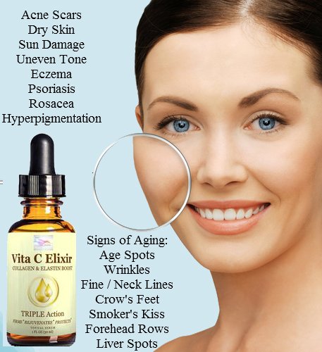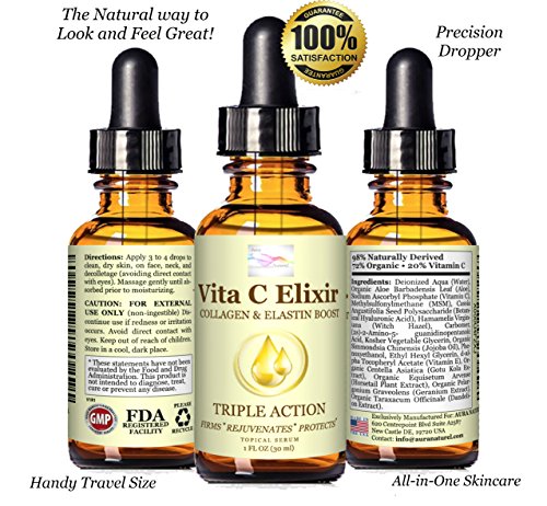 [Product Information]- FIRMING, REJUVENATING AND PROTECTING YOUR SKIN HAS NEVER BEEN EASIER! This is organic skin care for all skin types. Our Unique Triple Action Vita C Elixir is the best vitamin c serum that will make your face, neck and decollete look and feel a million dollars