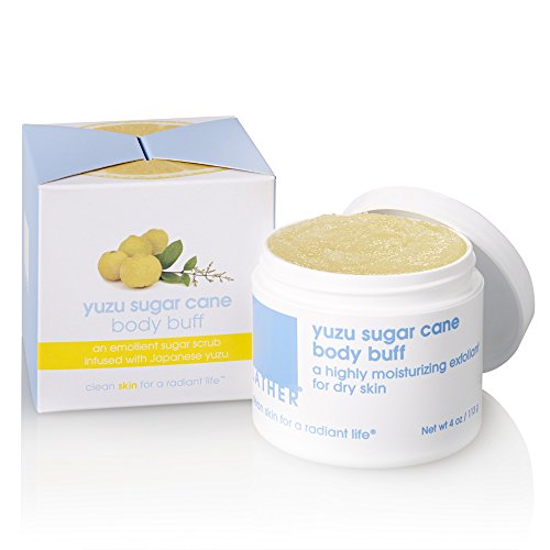LATHER Yuzu Sugar Cane Body Buff 4 oz - oil-based, highly moisturizing body scrub made with pure cane sugar and tangy yuzu essential oil from Japan