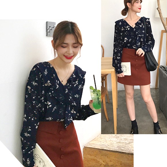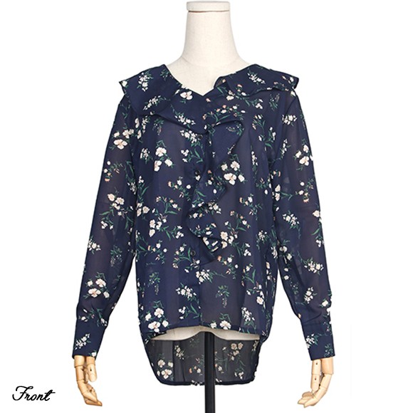 ラッフルフリルがキュートな花柄ブラウス♪