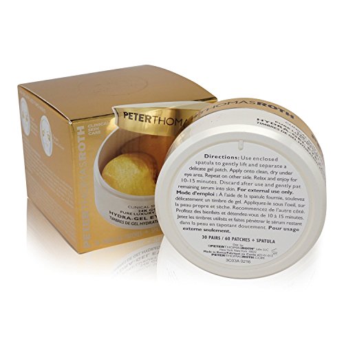 These ultimate luxurious anti-aging eye contour gel patches are infused with pure 24K Gold and Colloidal Gold to help lift and firm the appearance of the delicate eye area in just 10 minutes. Lavish and pampering eye treatments help to reduce the look of fine lines, wrinkles and crow's feet to reveal firmer, radiant, revitalized and youthful-looking under eyes. Hyaluronic Acid and Hydrolyzed Collagen deliver intense hydration to diminish the appearance of fine lines and wrinkles. Caffeine helps reduce the appearance of puffiness. Patches provide an instant cooling effect and are lightly scented with lavender to soothe and calm skin.Pure 24 Karat Gold -imparts an opulent, radiant glow, and provides anti-aging benefits.