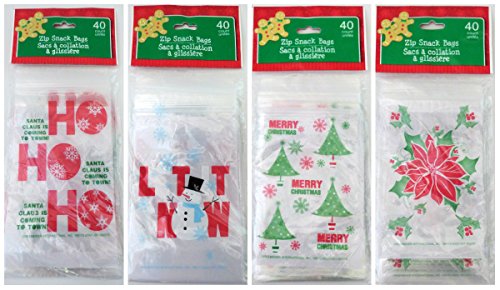 Assorted Festive Holiday Inspired Christmas Zip-Seal Snack Bags, 40-ct. Packs ~ (Set of 4)
