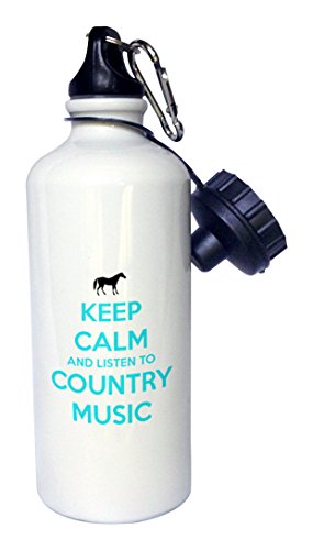 3dRose wb_173401_1 Keep Calm and Listen to Country Music White and Turquoise Horse Sports Water Bottle, 21 oz, White