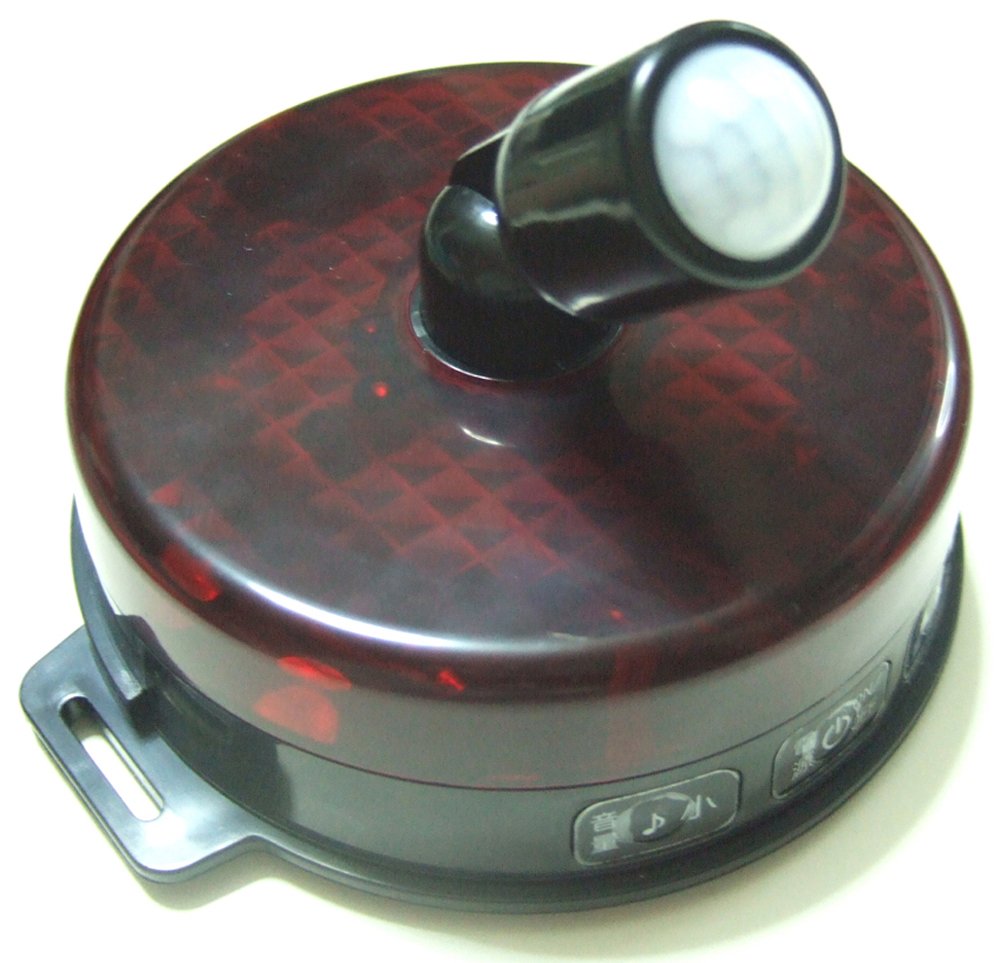 Alkaline batteries × 3 (sold separately) ● Power button: with ON / OFF ● Personality sensor: 360 ° × 180 ° rotation, sensing distance is 5 m ● Operating time: 15 seconds ● LED: 8 red LEDs flash
