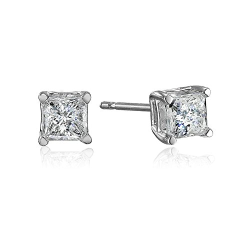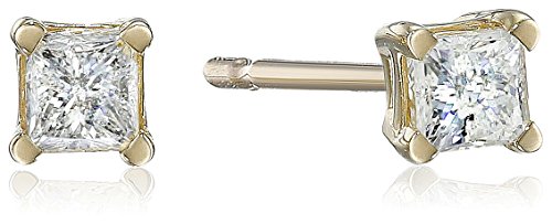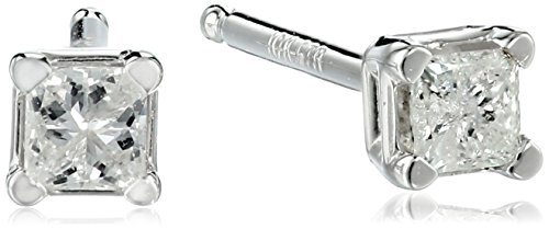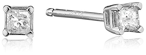 Diamond studs are a true wardrobe staple--a classic accessory that looks right in any setting. Each earring in this elegant pair showcases a single princess-cut diamond, held securely in a four-prong setting of 10 karat white gold. The diamonds have a total weight of 1/4 carat and are featured on posts with friction back closures. Flirty and eye-catching, these earrings are an affordable luxury that will add a bright touch to any outfit.Feature
