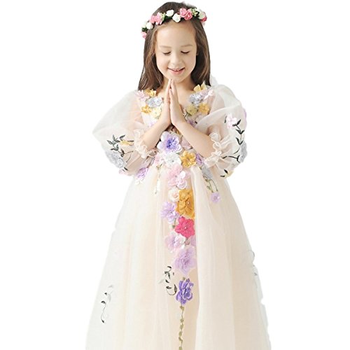 -. Title : 子供ドレス キッズドレス ワンピース ドレス ガールズ キッズ 子供服 女の子 発表会 結婚式 カラフル花飾り ノースリーブ フォーマル プリンセス フラワーガール ロング