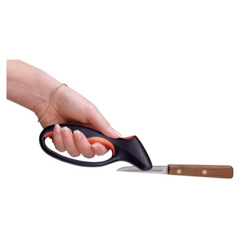 - Feature : 7-pc. cutlery set, includes six knives and a storage stand / Soft grip, anti-slip handles and High-carbon stainless steel blade construction / Grooves in blades keep food from adhering to blade and make for easy slicing / Nonstick coating provides easy clean up and long lasting use / Acrylic stand