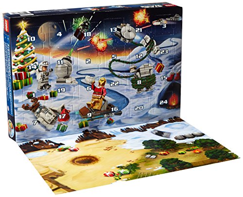 -. Binding : Toy -. Brand : -. EAN : 0673419233699 -. Feature : Open a window every day to reveal 24 different Star Wars themed gifts; features 5 minifigures and 2 holiday-themed Droids / Vehicles include Jabba's Sail Barge, Sand crawler, Star Destroyer, Millennium Falcon, AT-AT, A-wing Starfighter and a sleigh / Also features an Ewok weapon rack, catapult, gun turret, blaster rack and Hoth command post / Play out fun Star Wars scenes on the fold-out playmat / Makes a great festive gift for humans and Sith Lords everywhere -. IsAdultProduct : 0 -. Label : -. Manufacturer : -. Model : 6102259 -. MPN : 6102259 -. PackageQuantity : 1 -. PartNumber : 6102259 -. ProductGroup : Toy -. ProductTypeName : TOYS_AND_GAMES -. Publisher : -. ReleaseDate : 2015-09-01 -. Studio : -. Title : Star Wars 75097 Advent Calendar Building Kit -. UPC : 673419233699 -. Warranty : No Warranty