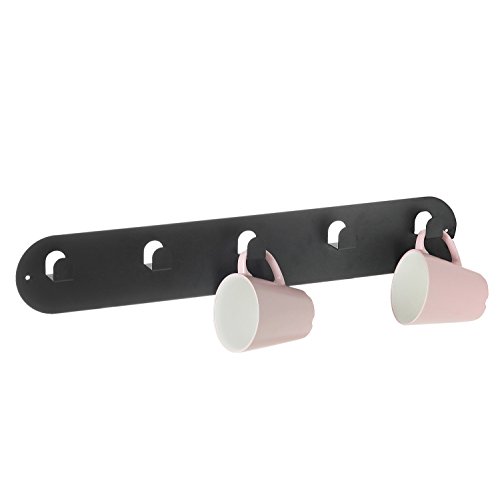 Modern Metal Wall Mounted 5-Hook Mug Rack, Hanging Cup Holder, Matte Black