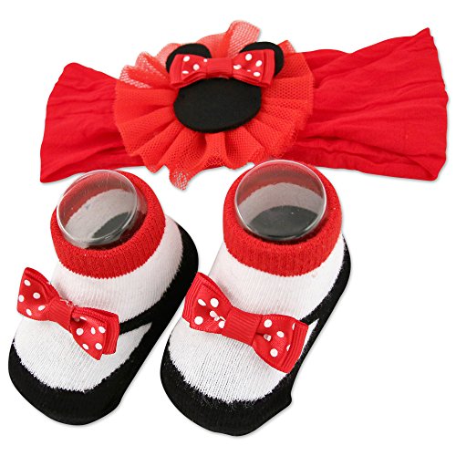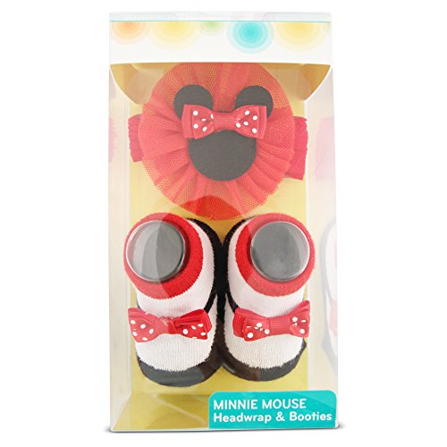 Disney Baby Girls Minnie Mouse Headwrap and Booties Gift Set, Red, 0-12M