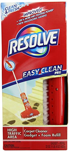 Deep clean and freshen carpets in busy, high-traffic areas with the RESOLVE Easy Clean Pro Carpet Cleaning System. This easy-to-assemble system includes a carpet brush, an attachable handle with a dispensing trigger that releases the cleaning foam, and a canister of RESOLVE high-traffic foam. The formula removes dirt and protects against future soiling while leaving carpets plush and deodorized.