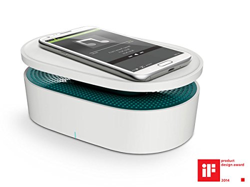 -. Feature : Advanced Wireless Near Field Induction Audio Technology / 360 degree Omnidirectional Audio / Requires no cable, no Bluetooth, no infrared, no WiFi. Just simply put your mobile phone on the speaker, the sound will be magically amplified / Works with any phones or audio source with built-in speaker / Built-in high capacity 1000mAh lithium battery, one full charge can last up to 6 hours