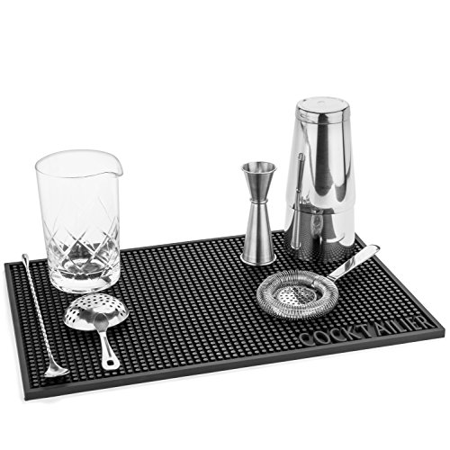 Cocktailier Professional Rubber Bar Service Spill Mat, Best for Glasses and Drinks 18 x 12 in, Black