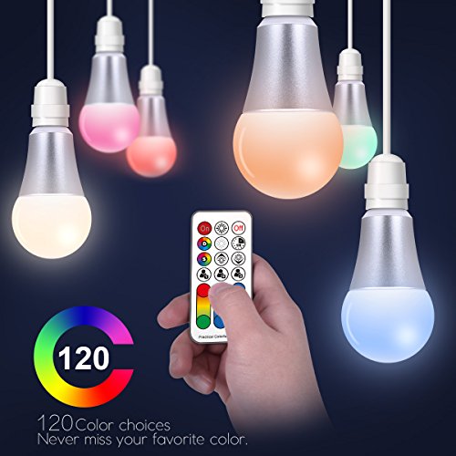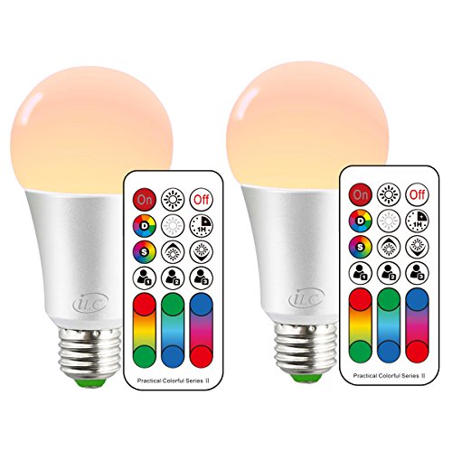 iLC Color Changing LED Light Bulb A19 E26 Screw, 120 Colors 10W Dimmable Warm white 2700K RGB LED Light Bulbs with Remote Control, 60 Watt Equivalent (Pack of 2)