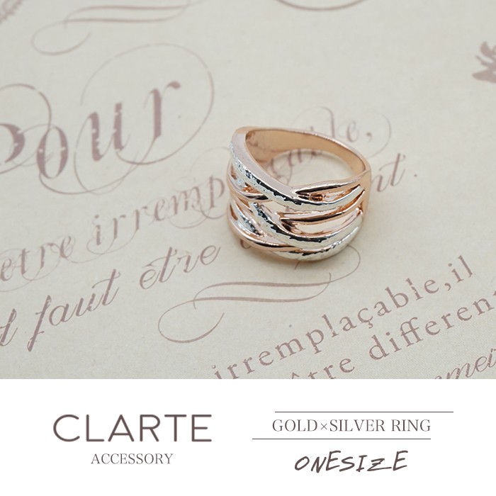 独特なクロスラインが指元を綺麗に魅せます。重ね付けのリングとも相性が良いです。