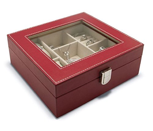 Jewelry Box Organizer With Display Window For Girls Teens Women Holder for Rings Necklace Bracelet Elegant Leatherette Material