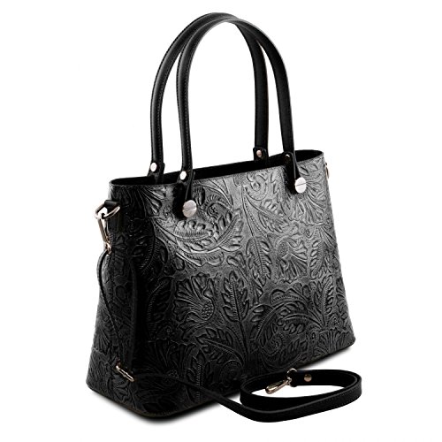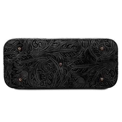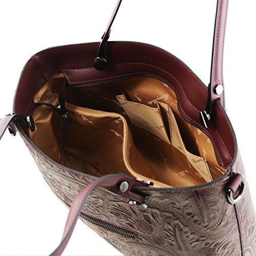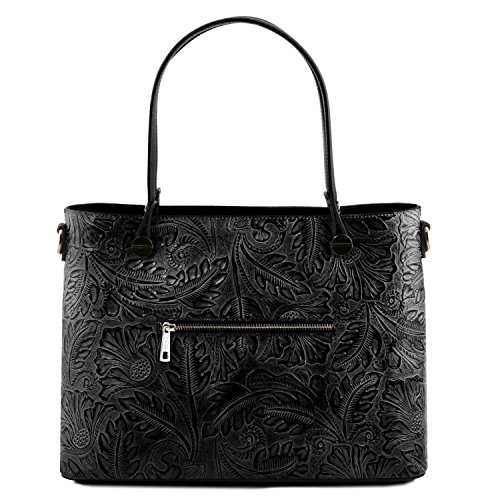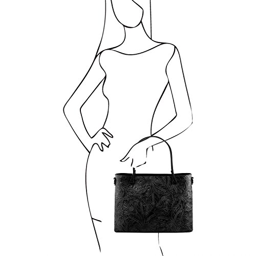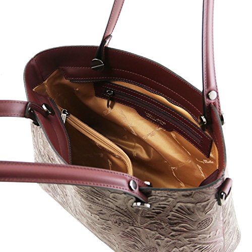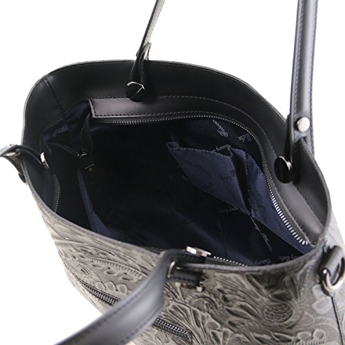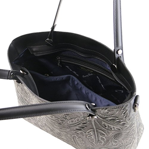 Materials: Genuine leather Inside material: Tuscany Leather Jacquard lining Outside part: Rigid structure Back compartment with YKK metal zip Inside part: 2 compartments Inside zip pocket Compartment with YKK metal zip Two multi-function pockets Can fit A4 format Hardware: Metal hardwares in gun-metal gray color Closure: Metallic zip closure Shoulder strap: Detachable shoulder strap Leather shoulder strap Bottom: Protective metal feet on the bottom Handles: Leather handles Dust Bag: Dust Bag included