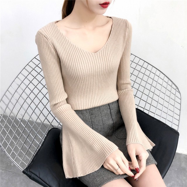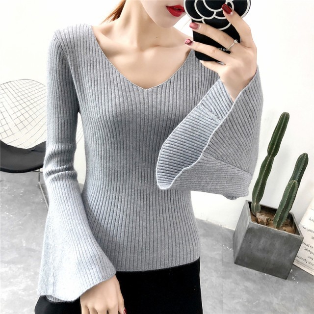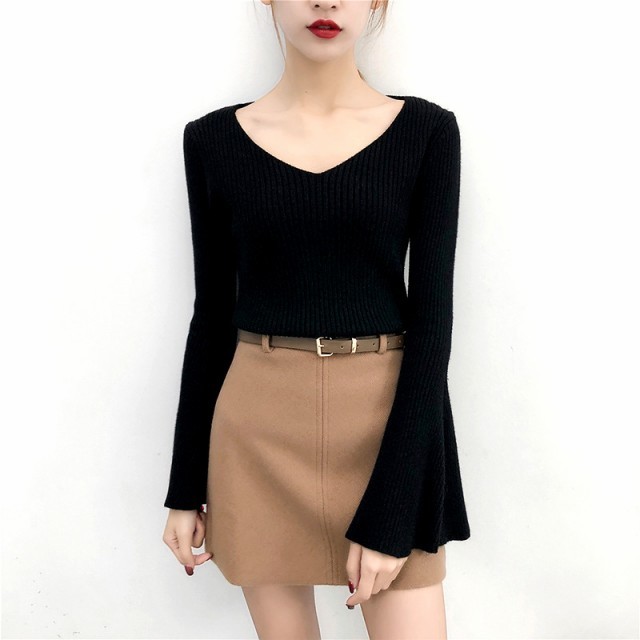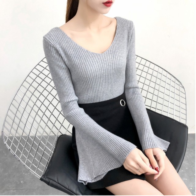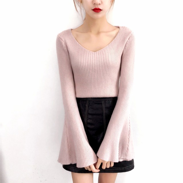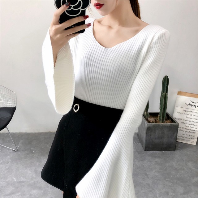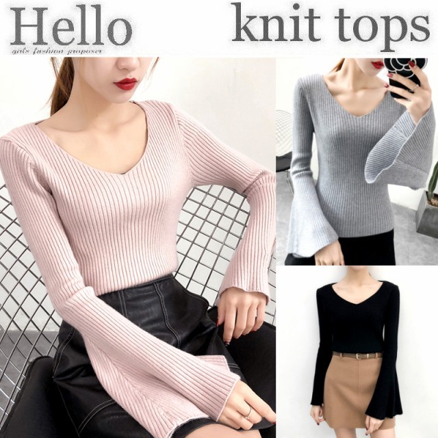 フレアスリーブ&Vネックがポイントのニットセーターです。