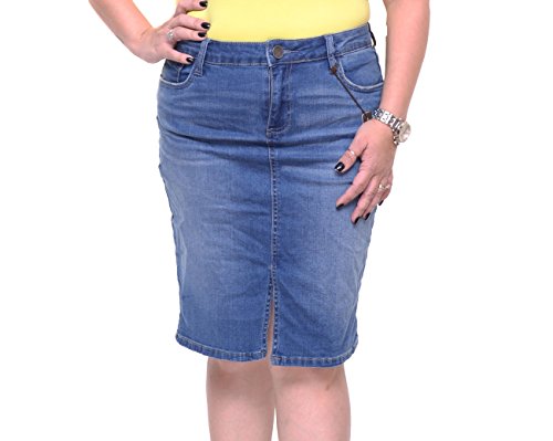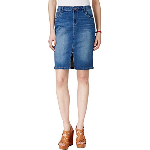 Product DescriptionBasic 5 pocket front slit denim pencil skirt0