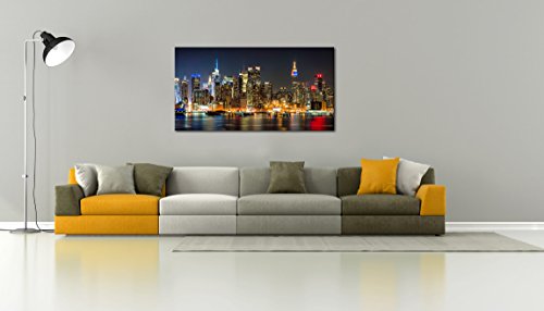 -. Title : MANHATTAN NIGHT LIGHTS - Premium Canvas Art P.R.Int - 40x20 inch Large New York Cityscape Wall Art Deco - Canvas Picture Stretched on Wooden Frame as Modern Gallery Artwork / e4348