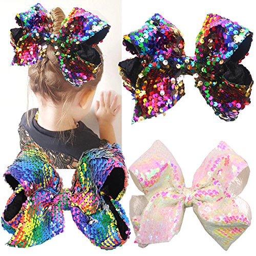 - Hair Bows Size: 8 Inches which is made of 7 cm glitter sequins fabric,Attached With 8cm Alligator clips;