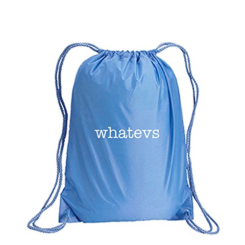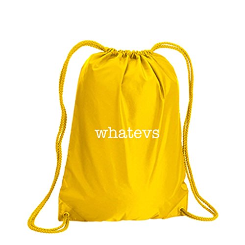 Product Description This durable and stylish nylon tote features "Whatevs" on a cinch pack tote with white ink. Bag comes in small and large sizes and is made of a durable 210 Denier nylon and has color-matched draw cords. Printed in the USA on an imported bag. 0