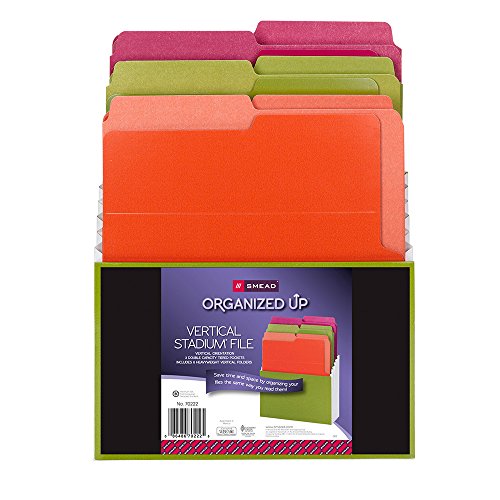 Smead Organized Up Vertical Stadium File with Heavyweight Vertical Folders, 3 Pockets, Letter, Peridot/Brights (70222)