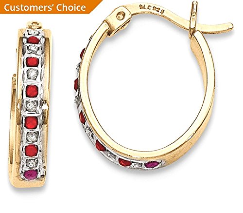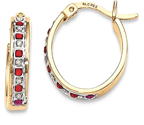 ICECARATS DESIGNER JEWELRY 925 STERLING SILVER GOLD PLATED DIAMOND RED RUBY OVAL HOOP EARRINGS EAR HOOPS SET FOR WOMEN
