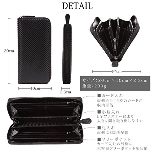 -. Feature : 【素材】表側:カーボンレザー(牛革)、内側:牛革。カーボンレザーは革の本場イタリアの名タンナーの革を使用しております。 / 【カーボンレザーとは】独特の格子柄をもつフィルムを牛革に圧着。軽量で耐久性や撥水性に優れた素材。車の内装や雑貨など様々なシーンで活用されています。 / 【使いやすさにこだわりました。】カードポケットは両側合計12枚のカードが収納可能。4か所あるフリーポケットで見た目以上の収納力。ファスナーは信頼のYKKを使用しております。 / 【使いやすい小銭入れ】小銭入れのファスナーをマチの真ん中部分まで取ることで開きが広くなり、小銭が取り出しやすく非常に便利です。 / 新商品発売キャンペーンの為、特別価格にて販売しております。