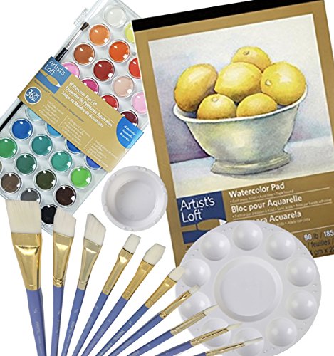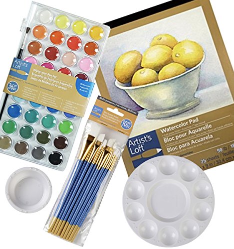- 5 PIECE WATERCOLOR SET – Package Includes: one 9”x12” watercolor pad, one 36 shades watercolor pan set, one set of 10-piece paint brushes, one 10 well round paint palette, one round paint/water cup