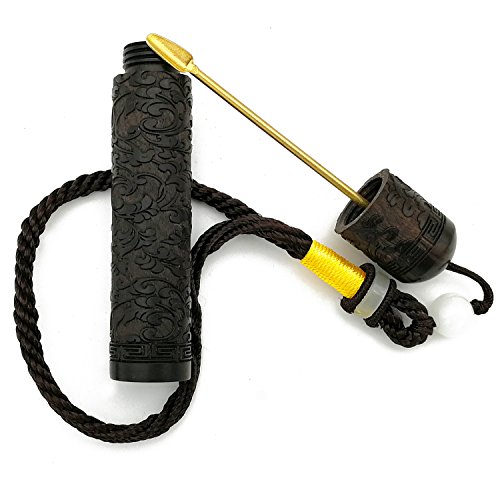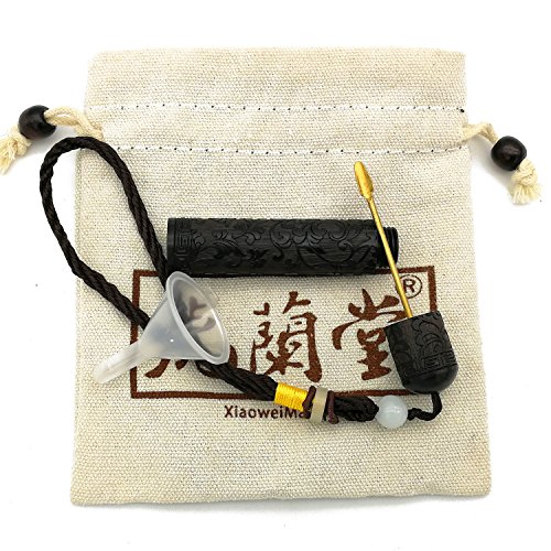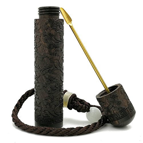 Snuff Bottle Metal Spoon Snorting Snorter Bullet EDC Ebony BlackWood Portable Fragrance Toothpick Case Container (IVY)