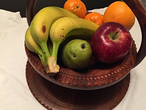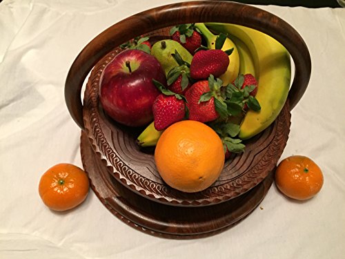Dimension: Diameter - 12 inches and Height from the handle - 10 inches. It is a truly unique decorative round basket, handmade from finest wood. Hand etched from single piece of wood this basket comes with handle and has a unique "collapsible" feature to neatly stow away when not being used. It also makes it perfect to carry for the picnic. An elegant piece of art, a fruit basket, or for bread, candies, chocolate, nuts, nachos, potpourri etc and will be great for display on the dining table, in the kitchen or living room. A refreshingly intriguing gift and utility item for any modern home! Excellent product for weddings, birthdays and regular day to day usage.Feature